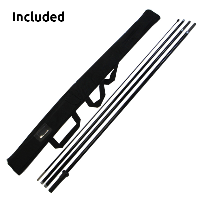 - Included: Fibreglass pole + solid and strong ground star picket spike + carry bag